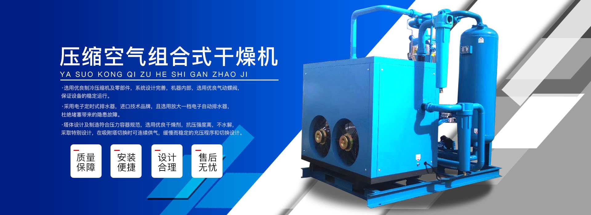 本公司系中國(guó)科學(xué)院、重鋼院、機(jī)電技術(shù)設(shè)計(jì)院、氣動(dòng)技術(shù)研究所等相關(guān)專家合作的具有雄厚技術(shù)力量的高科技實(shí)體,是一個(gè)專業(yè)從事各種氣體干燥凈化及分離純化設(shè)備研究開(kāi)發(fā)及推廣應(yīng)用的高科技公司。公司積多年對(duì)壓縮空氣凈化設(shè)備的生產(chǎn)技術(shù)和銷售經(jīng)驗(yàn),并在消化吸收國(guó)外先進(jìn)技術(shù)的基礎(chǔ)上,結(jié)合國(guó)內(nèi)實(shí)際工況特點(diǎn),研制出適合國(guó)內(nèi)外廣大用戶的“滬盛”牌HSD系列壓縮空氣冷凍式干燥機(jī)、吸附式干燥機(jī)、后部冷卻器、預(yù)冷機(jī)組、工業(yè)用冷水機(jī)組和HF系列壓縮空氣高效精密過(guò)濾器(國(guó)產(chǎn)濾殼,美國(guó)漢克森HANKISON濾芯)等13大系列計(jì)300多種規(guī)格產(chǎn)品。并且新研發(fā)出燥式干器, 廣泛應(yīng)用于電力、冶金、電子、機(jī)械、石油、化工、汽車(chē)制造、紡織、化纖、輕工、造紙、橡膠、儀表、食品、空氣、卷煙、生物、醫(yī)藥、日化等行業(yè),在國(guó)內(nèi)同行業(yè)中一直處于領(lǐng)先地位。